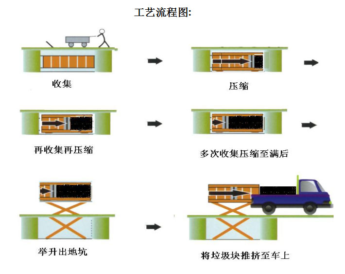 1.主要特點 ◇平穩(wěn)可靠:兩側(cè)舉升,剪叉跨度大,升降平穩(wěn),無傾斜; ◇淺地坑:地坑深度僅為1.55m,保潔及維修極為方便; ◇高效率:壓實每噸垃圾時間≤10min; ◇全封閉水平壓縮:采用水平壓縮方式,垃圾壓縮密度≥0.86t/m3,垃圾壓縮后體積大大減小,從而大幅度提高轉(zhuǎn)運車輛裝載量和轉(zhuǎn)運效率,降低垃圾處理、轉(zhuǎn)運等費用; ◇動作少,故障率低,整套設(shè)備的垃圾壓縮、裝車由三個動作完成,簡單實用,各動作之間安全互鎖,防止操作人員誤操作造成安全事故,安全可靠; ◇垃圾儲存、壓縮及寄存全部在地面以下,地面上沒有垃圾散落,對環(huán)境影響較小,環(huán)保性好;垃圾壓縮后密度高,水份少,可避免汽車運輸中的垃圾散落、污水滴漏現(xiàn)象,避免二次污染; ◇土建費用低,占地面積小,可以不蓋大型工作間,既節(jié)約了投資,也縮短了工期; ◇留有專門的維修窗口,維修保養(yǎng)方便; ◇設(shè)有固定式操作和遙控器兩種操作模式,方便實用; ◇自動化程度高,可大幅提高工作效率,降低勞動強度。