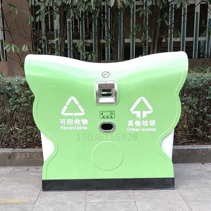 4.側板文字標識采用絲網印刷,印刷有“可回收物” “其他垃圾”,分類標識參照《城市生活垃圾分類標識》規定的名稱、圖形、符號和顏色要求,LOGO可定制。