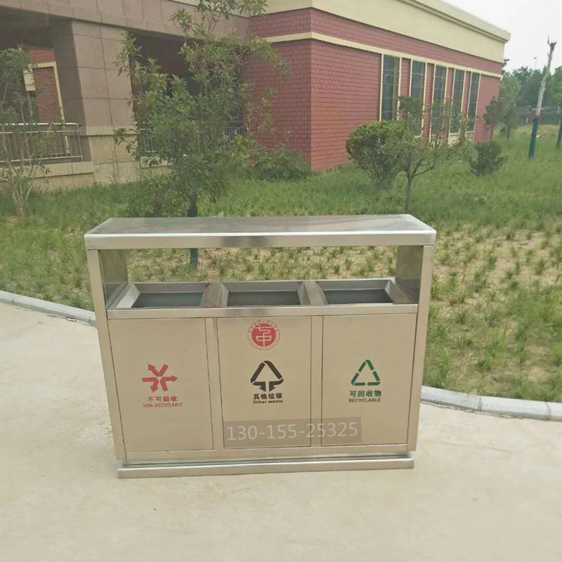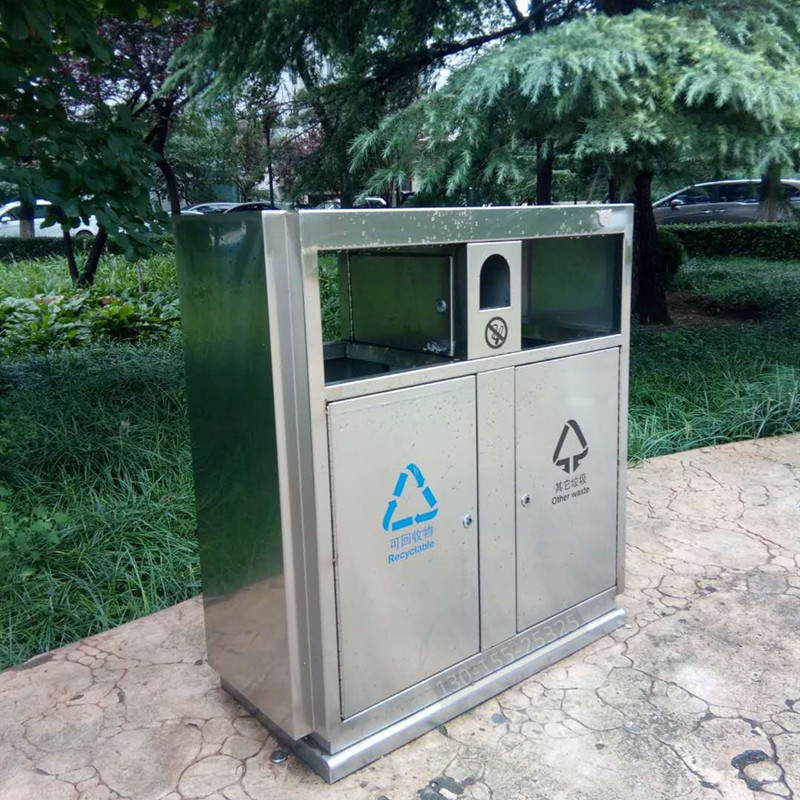 不銹鋼分類垃圾桶采用優質加厚不銹鋼制造,具有一定的防腐蝕功能,不易生銹,使用壽命更長,做工精致,外觀大方,適合各種戶外場所。